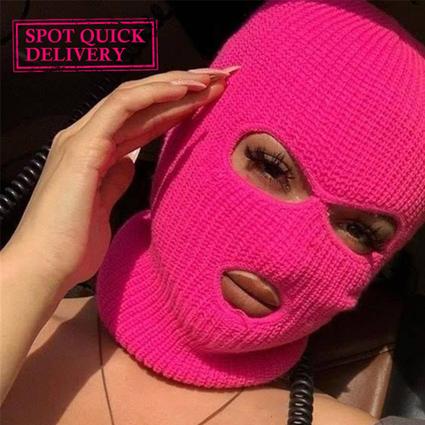 חורף באיכות גבוהה צוואר חם 3 חור מלא פנים כיסוי 100% אקריליק ניאון סרוג כובע עבור חיצוני רכיבה על אופניים גרב סקי מסכה